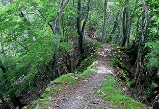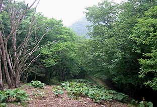 滝入りの峰は巻いて行く ※登山道の上下ではっきり植生は分かれる |