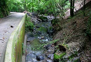 川苔谷林道の上部は谷の脇を行く |