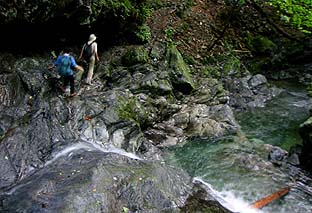 ショートカットの道は沢筋が荒れている |