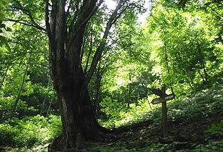 このコースの象徴・カツラの古木 ※体験の森園内はコースが錯綜する |