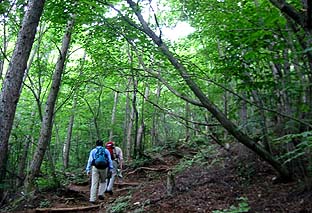 御前山から惣岳山に向かう尾根道 この少し後、木に登っているツキノワグマを目撃 |