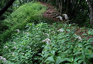 道脇では所々でオカトラノオの小群落がある |