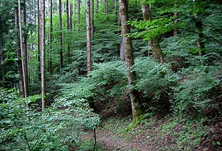 御前山頂南側面の樹林 ※下草が生い茂る本来の林 |