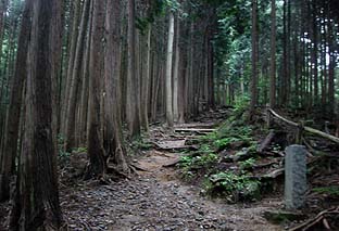 植林帯の中の緩やかな下りが続く |