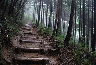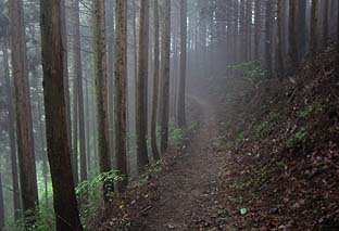 岩茸石山への尾根縦走路 ※落葉樹と針葉樹が交互する |