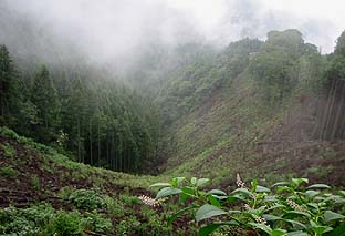 伐採跡地から谷を見る ※岩茸石山-惣岳山間では数カ所で伐採している |
