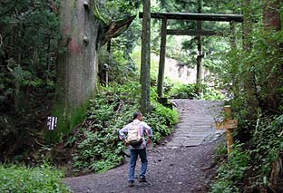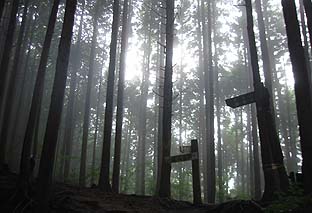男具那ノ峰への分岐:天狗の腰掛け杉 ※峰へは右に入り鳥居をくぐる |