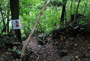 大天狗・小天狗 ※露頭の岩上にある(この前後は岩場の道) |
