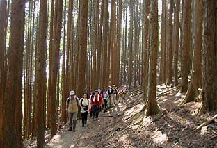 ← | 深いスギ林の中を行く |