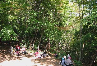 ※この水場は一年中枯れることはない 堂所は尾根中程にある平坦地 (昼食) |