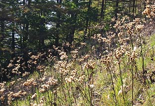 マルバダケブキの白い穂 ※夏はブナ坂から先の防火帯に一面に咲く |