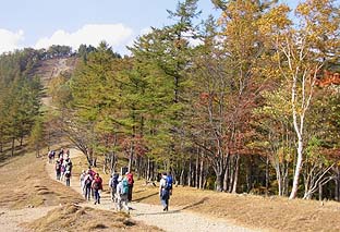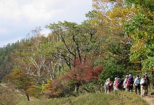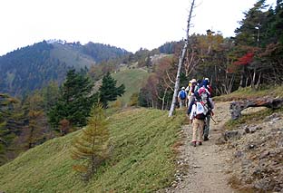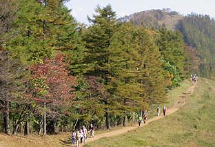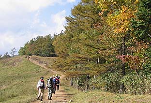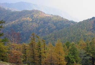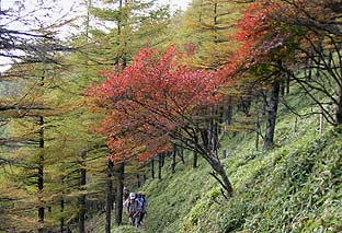← | ブナ坂 ※カラマツもまだきれいな紅(黄)葉とはなっていない ※奥に見えるのは七ツ石山 |