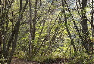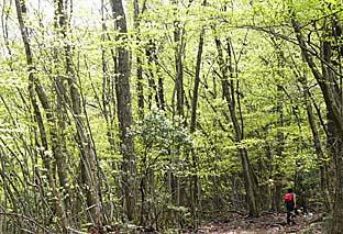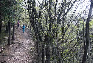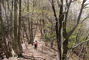 ムロクボ尾根(丸山尾根)を登る ※広葉樹が多く、ちょうど新緑の盛り |