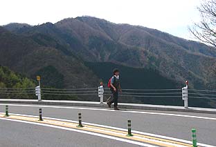 奥多摩周遊道路を行く・後方は三頭山 ※月夜見山まで行く間、一部この道路を通る |