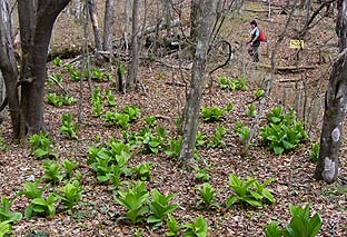 ← | 惣岳山〜御前山の鞍部 ※付近にはバイケイソウが多く、だいぶ葉を伸ばしていた ※境(栃寄)集落に下る分岐がある |