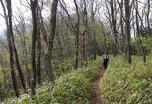 ← | 入小沢ノ峰(標高1,302m)付近 ※オツネの泣き坂を過ぎ、少し緩やかな道となる ※この高さまで来ると芽吹きは浅い |