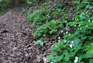 ← | 越沢集落跡付近 ※道脇にはニシンソウが点々と咲いていた |