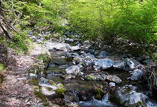 ← | 流れの脇の登山道 ※獅子口までは沢筋に沿って登る |