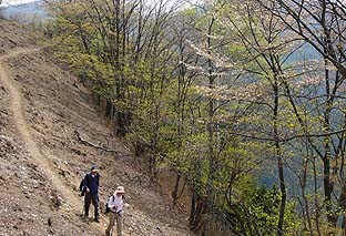 長尾丸に向かうヤセ尾根 ※鉄塔から長尾丸にかけしばらく続く ※周辺ではまだイワウチワが咲いていた |