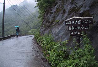 雲取山・飛龍山への登山口 後山林道入口 ※お祭りバス停から2〜3分国道を歩く |