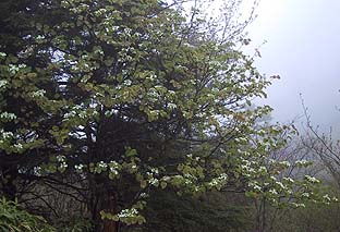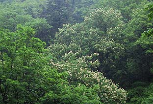 ← | 登山道から見る林・トチノキは花の盛り ※三条の湯付近 |