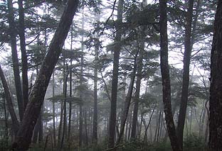 飛龍権現周辺は針葉樹林帯の深い森 ※コメツガ、シラビソの亜高山性の針葉樹が主体 |