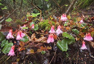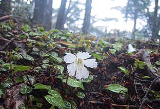 ← | 前飛龍直下のイワカガミ ※大雨のため花が開いていなかった ※小さな群生が散在する |