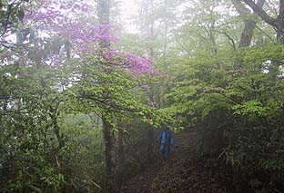 飛龍権現-前飛龍間のアズマシャクナゲ ※この間が最も密生している ※花は盛りが間近となっていた |