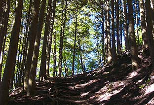 登り始めのしばらくはスギ・ヒノキの植林帯 |