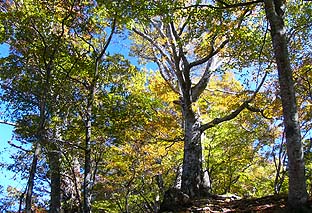 ヨコスズ尾根中央部 ※ブナ林が少しの間広がる ※緩やかな登りが多い |