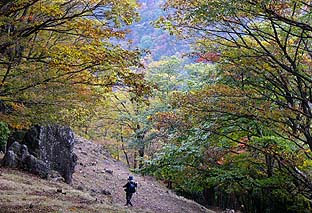 ☆ [天候:晴後曇] ★ [歩数/約37,600歩] ※色づく木々の葉で飾られた都県境の尾根を行く。