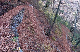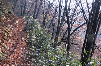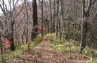 牛ノ寝通りに合流 ※榧ノ尾山から少し下った地点 ※カエデの朱色が目を引く |