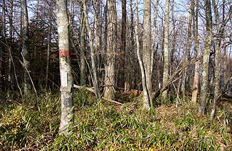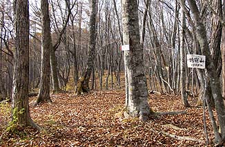 鶴寝山頂(標高1,369m) ※落葉広葉樹の疎林 |