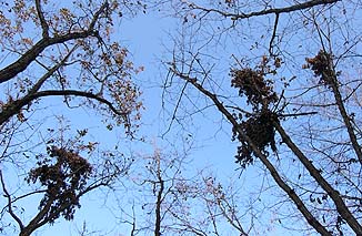 ← | 高指山頂周辺で見かけた熊棚 ※周辺はコナラ林で見上げると熊棚がやたら目立つ ※少し下るとスギ・ヒノキの植林帯となる |