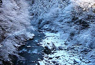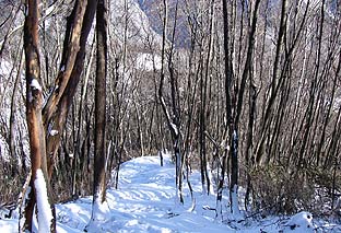 ← | 稲村岩真下の沢筋を行く ※この付近で5cmくらいの積雪がある ※沢を離れると急登となる |