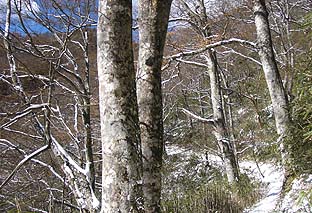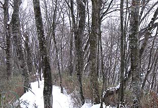 縦走路のブナ林 ※広い範囲ではないが太い木も多い |
