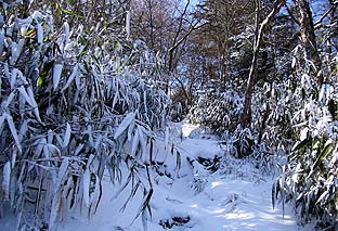 稲村岩尾根上部 ※雪が笹に付着したまま ※積雪は10cm位。吹き溜まりはもう少しある |