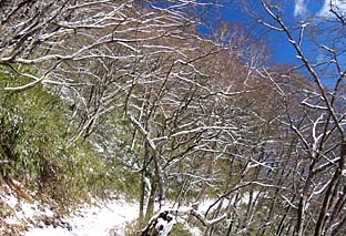 ← | 石尾根縦走路 ※枝に昨晩の雪が付着している |