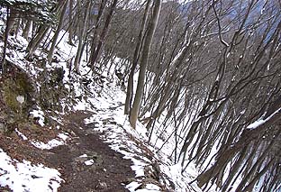 ← | 稲村岩尾根中腹はブナ林となる ※相変わらず傾斜はきつい |