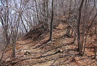 陣馬山頂直下 ※樹林帯を抜け、急に視界は広がる |