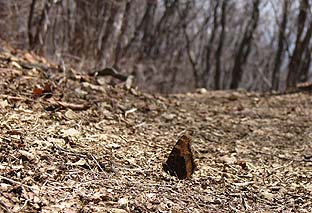 ← | 成虫越冬のヒオドシチョウ ※大沢山の山頂付近の尾根を飛び回っていた |