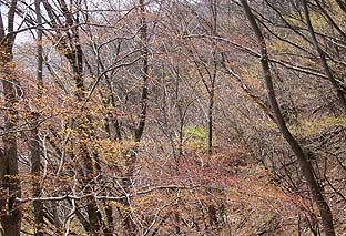 ← | 日原峠周辺の芽吹く木々 ※主にカエデ類、黄色はアブラチャンの花 |