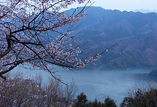 ← | 相模湖への下山路から見る相模湖 ※下る途中、一カ所だけ開けている |