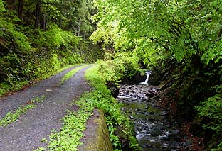 林道沿いの矢沢 ※出だしは舗装された林道を沢沿いに行く |