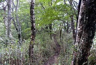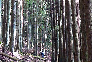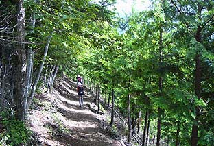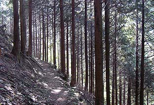 ← | スギ・ヒノキと広葉樹が交互した登りがしばらく続く この間は比較的緩やかな登りが多い |