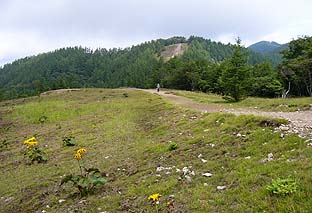 ← | 千本ツツジ山頂から見る高丸山(左)と日陰名栗峰 ※この山頂は良く開け展望も良い ※山頂周辺はワラビに混じりコウリンカが群生して咲いていた |