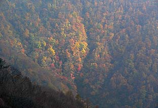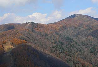 ← | 堂所上の樹林帯から見る七ツ石尾根の紅葉 ※晩秋の感じに近くなる |