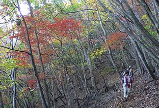 登山口からしばらくはまだ青い葉も目立つ ※一旦車道に出、登山道を少し登った周辺 |