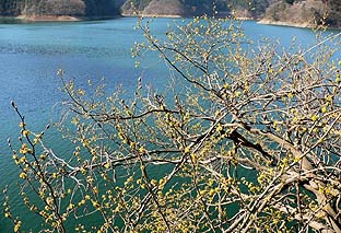 歩道から湖面を見る ※ダンコウバイは花の盛り |