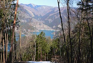 防火帯最上部から奧多摩湖を振り返る ※正面奥は六ツ石山 |